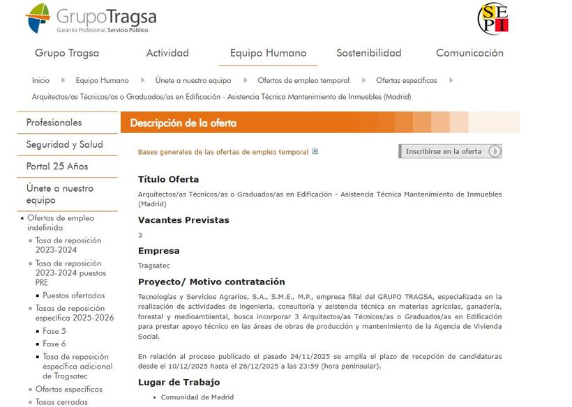Tragsa publiceert nieuwe vacatures voor Technische Architecten o Afgestudeerden in de bouw.
