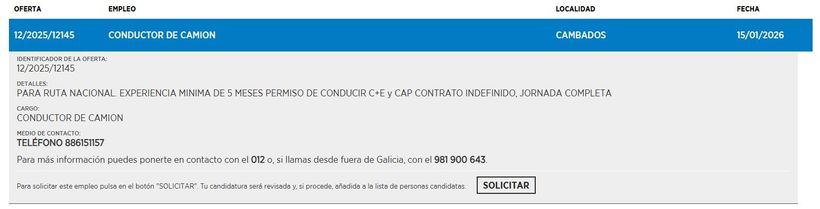 De Xunta de Galicië zoekt Vrachtwagenchauffeur.