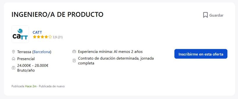 Het bedrijf CATT neemt iemand in dienst Terrassa (Barcelona).